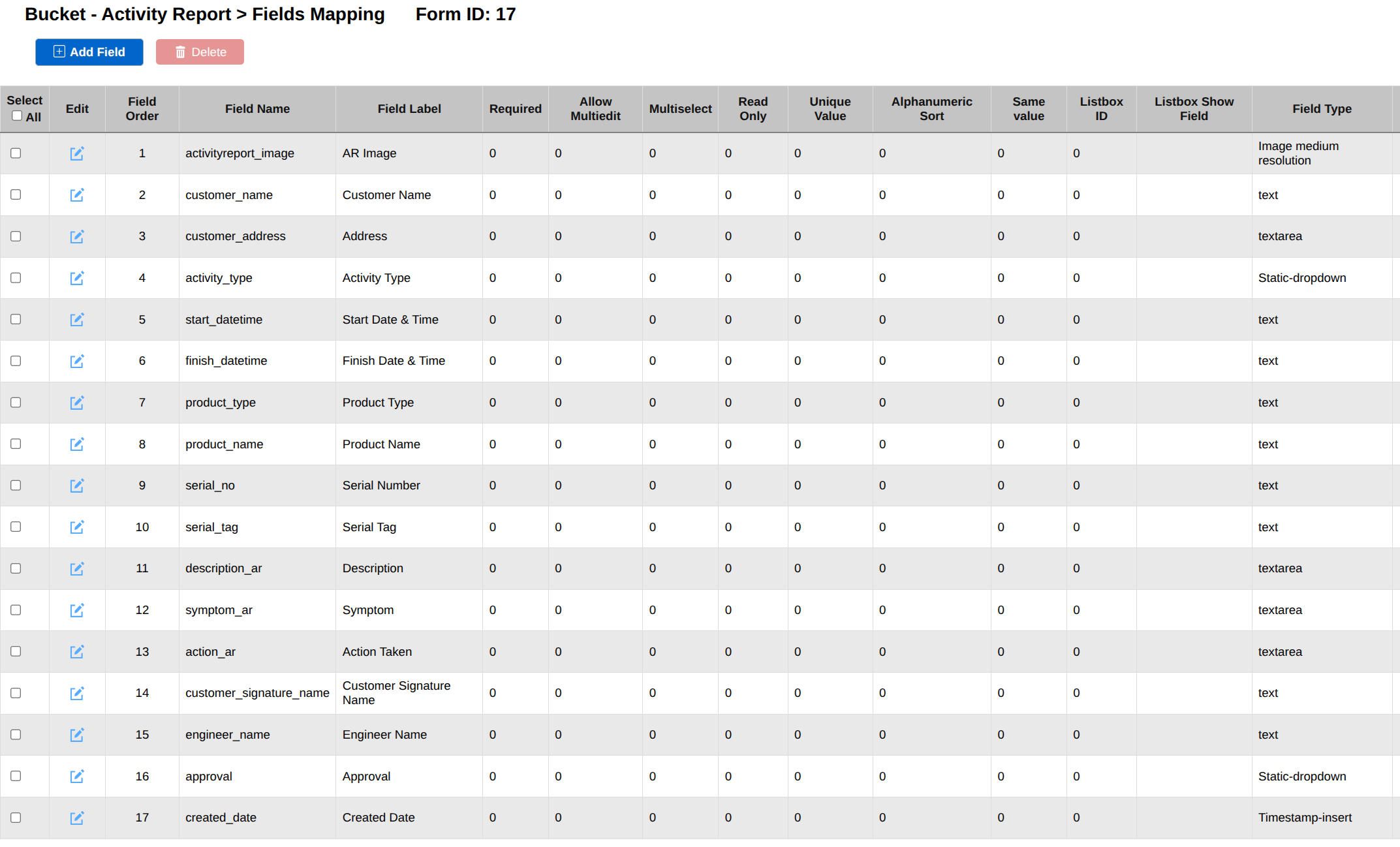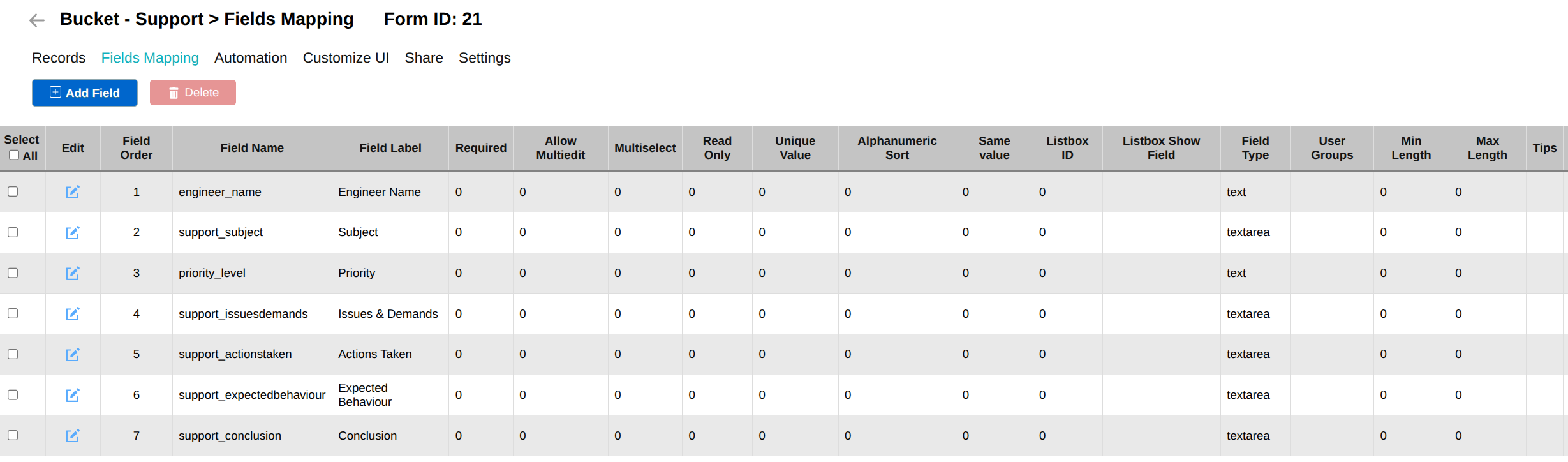 Backend Support Form Fields Mapping