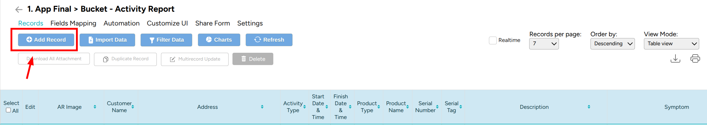 Add Records Button for Activity Report