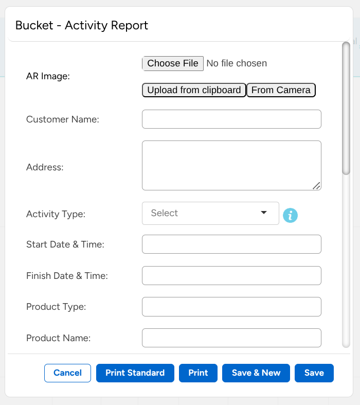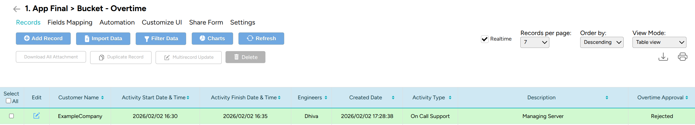 I’ve created the fields mapping for the acivity report OCR, after that you can start adding record inside the form with the Add Record button, and the add record will prompt you to insert the value you’ve put inside the fields mapping.