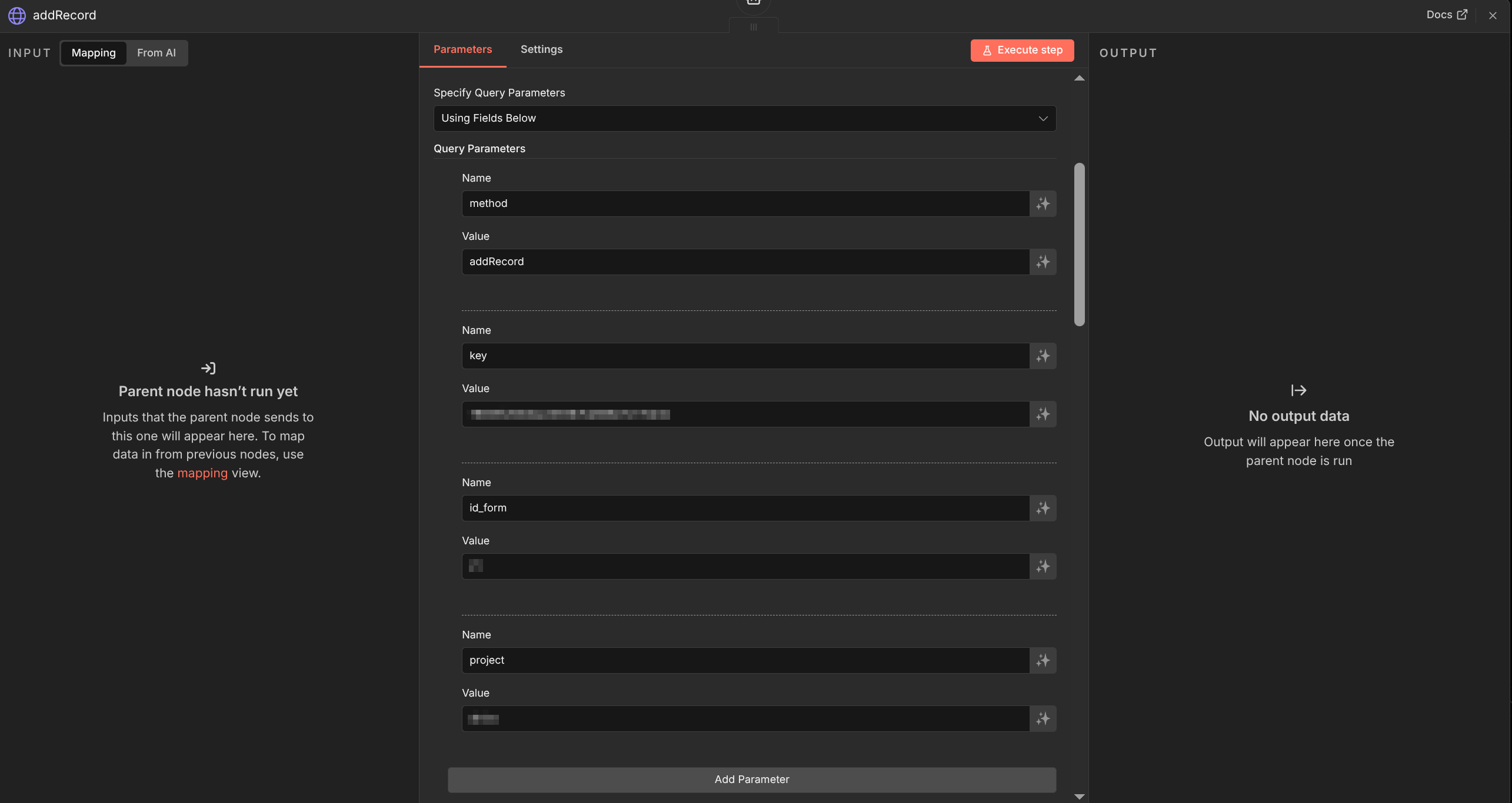 addRecord Tool Query Parameter