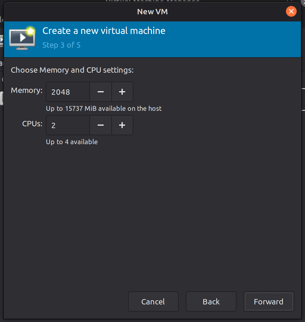 Setting Up Memory & CPU Specification